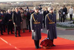 Радий Хәбиров Өфөлә Дуҫлыҡ монументына сәскәләр һалды